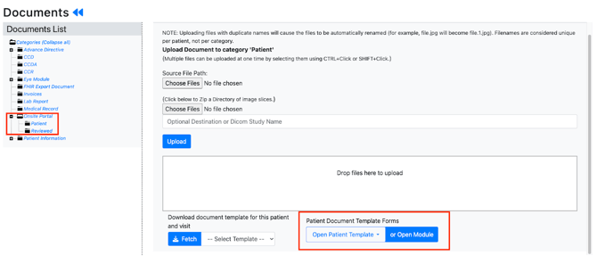- To view the completed patient form, navigate to the patients chart and select Documents > Onsite Portal > Patient Document Template Forms