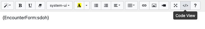 - For example, if LayoutId was sdoh, then the directive would be {EncounterForm:sdoh}.