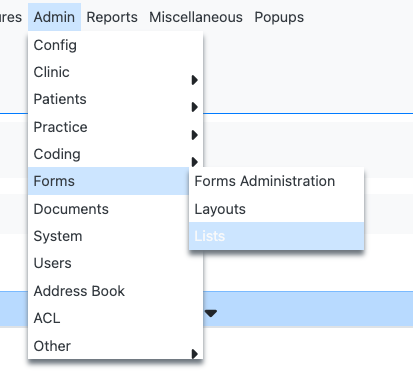 - Admin > Forms > List